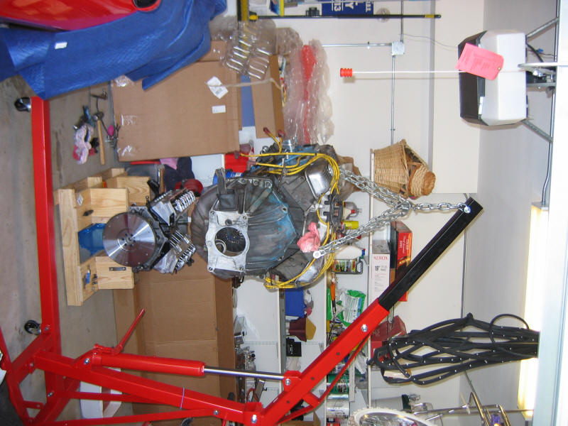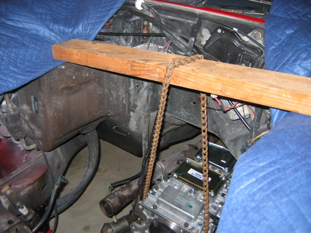 I suspended it with a chain over a 2x4 for a while until the engine was